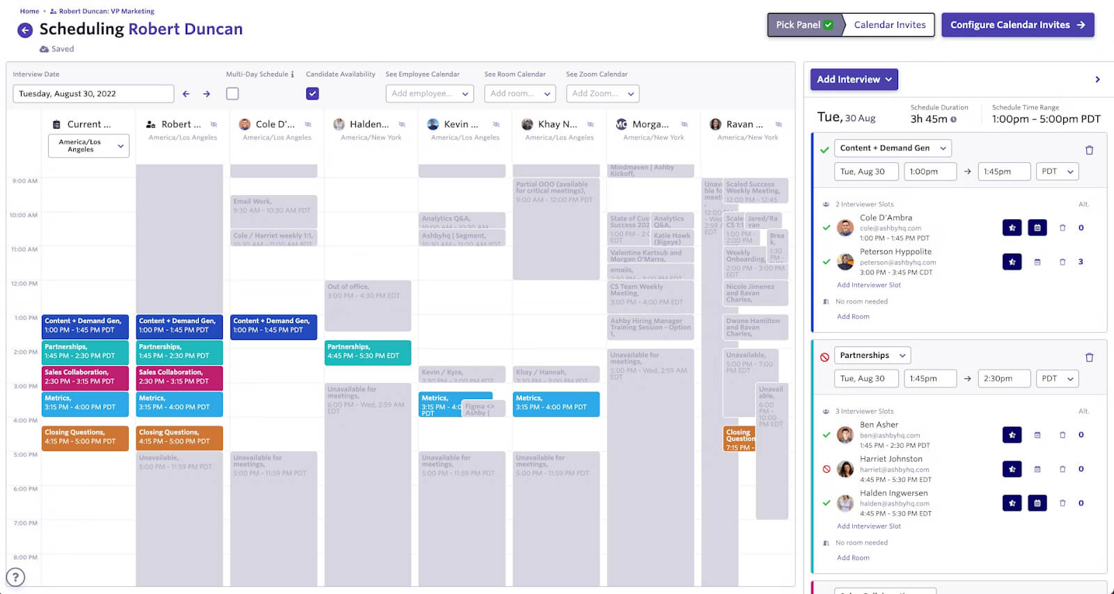 - Automated scheduling: Supports self-serve booking links, automated scheduling based on interview stages, and complex multi-interviewer coordination to reduce back-and-forth.