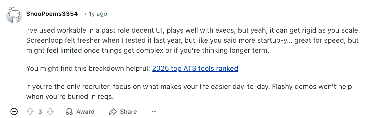 - Newer platform compared to legacy ATS tools