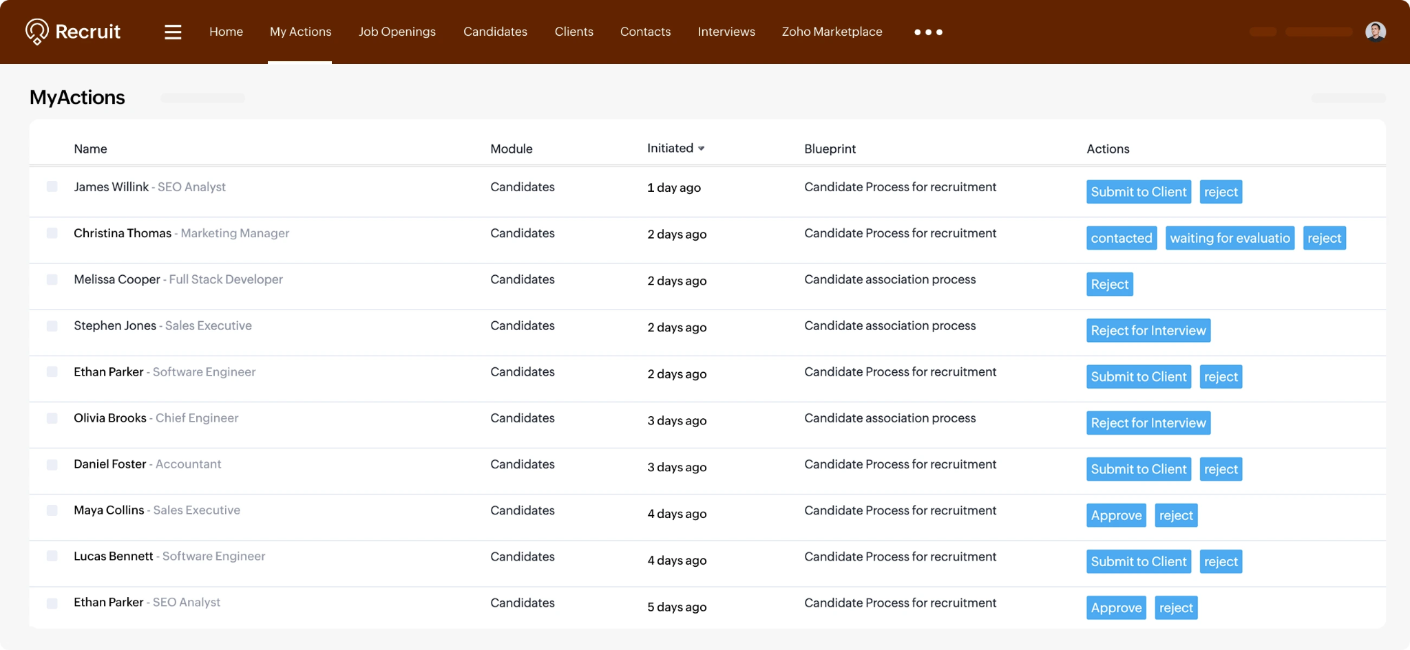 - Zoho Recruit: Best for small teams or agencies that need a budget-friendly ATS with a free plan and customization