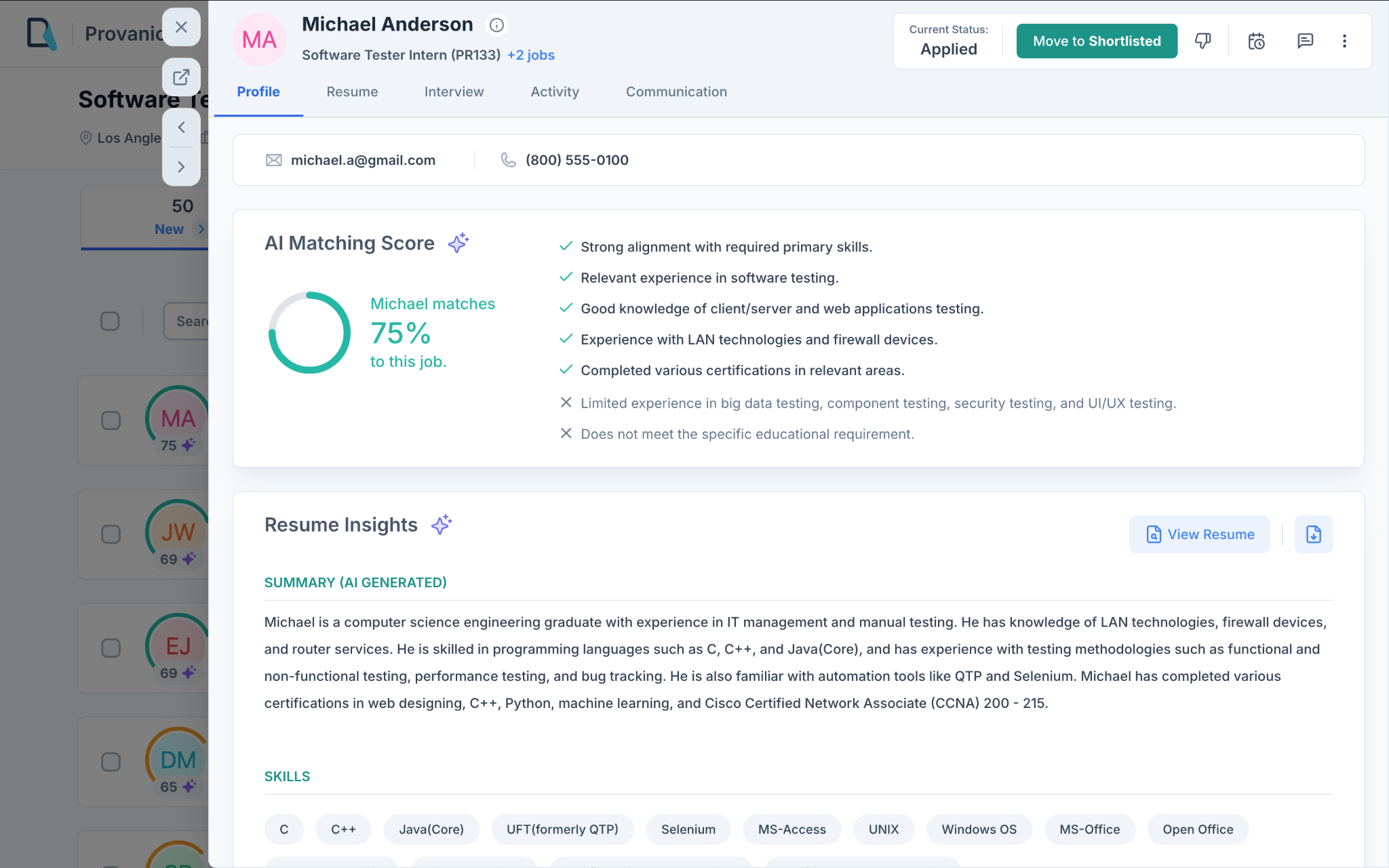 - Manual resume screening and shortlisting