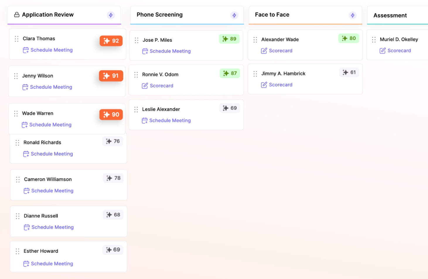 • Imposes structure on hiring workflows: Candidates move through clearly defined stages instead of informal, inconsistent processes that vary by role or hiring manager.