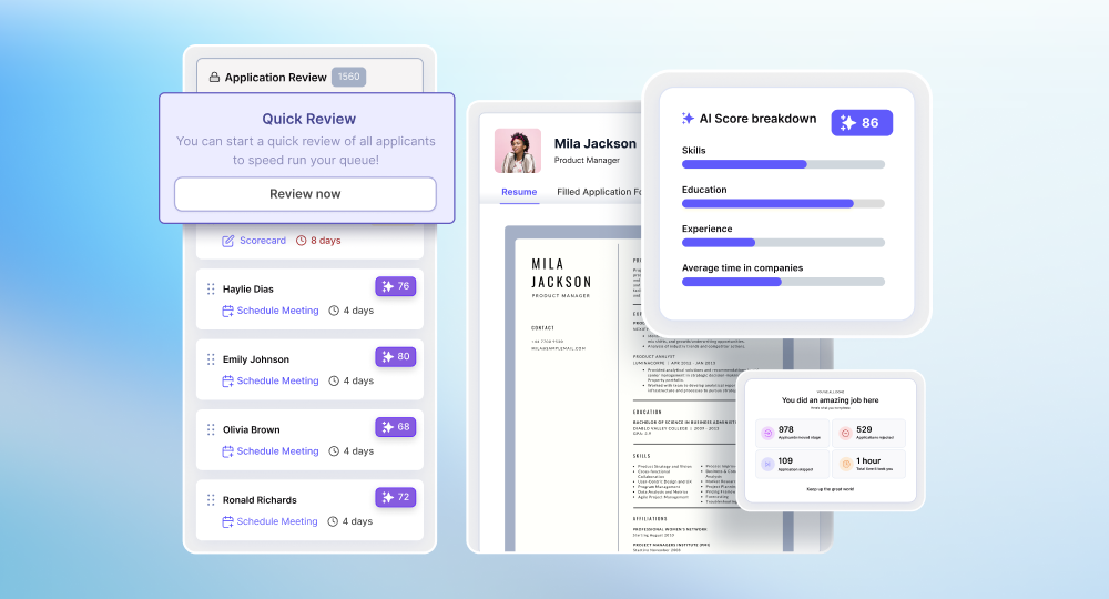 - AI-powered screening that reduces manual review: Instead of going through hundreds of resumes, Kula’s AI scoring ranks candidates based on role-specific criteria. Recruiters focus on the top matches first, which improves both speed and quality of hire.