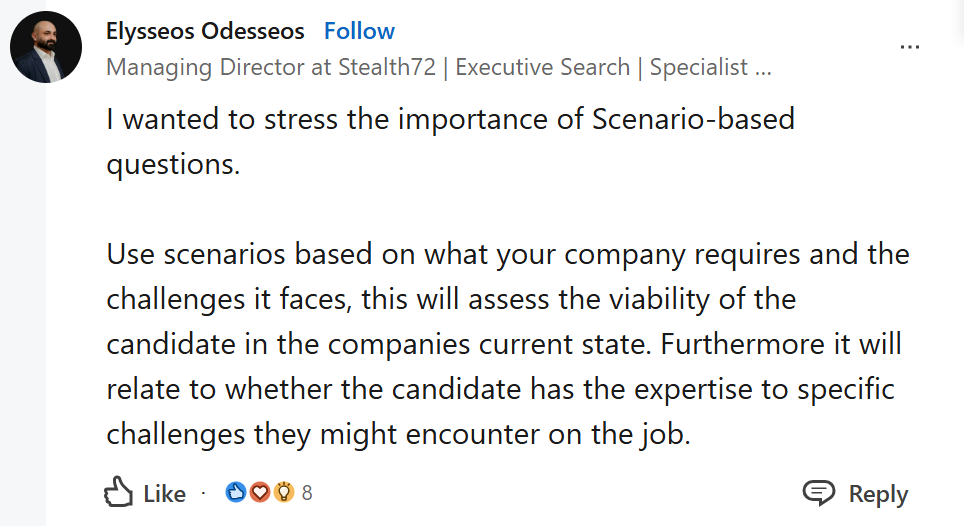 Candidates feel more involved and valued when discussing real scenarios rather than generic questions. And, for recruiters, it provides deeper insights into a candidate’s critical thinking and decision-making skills.