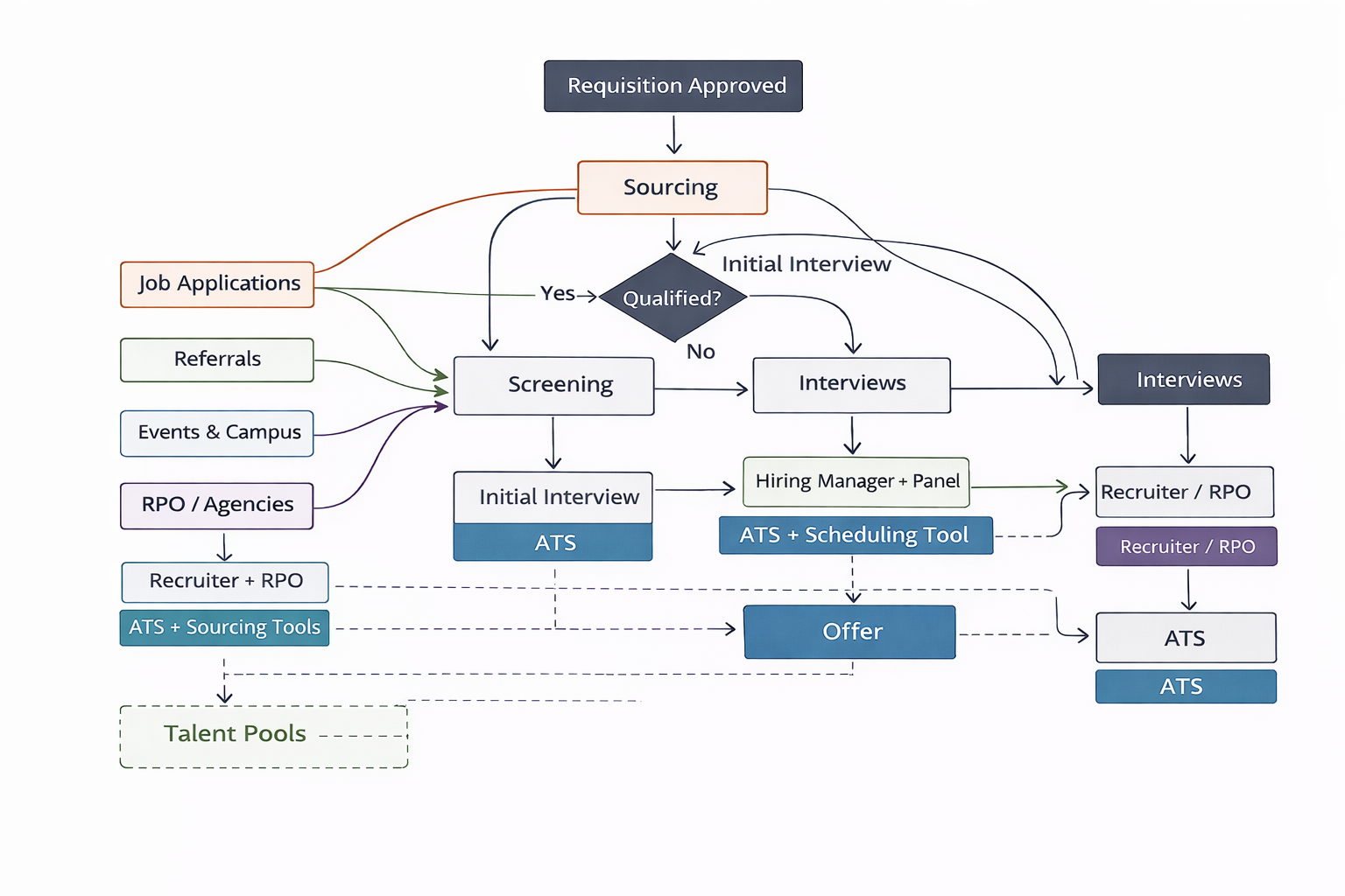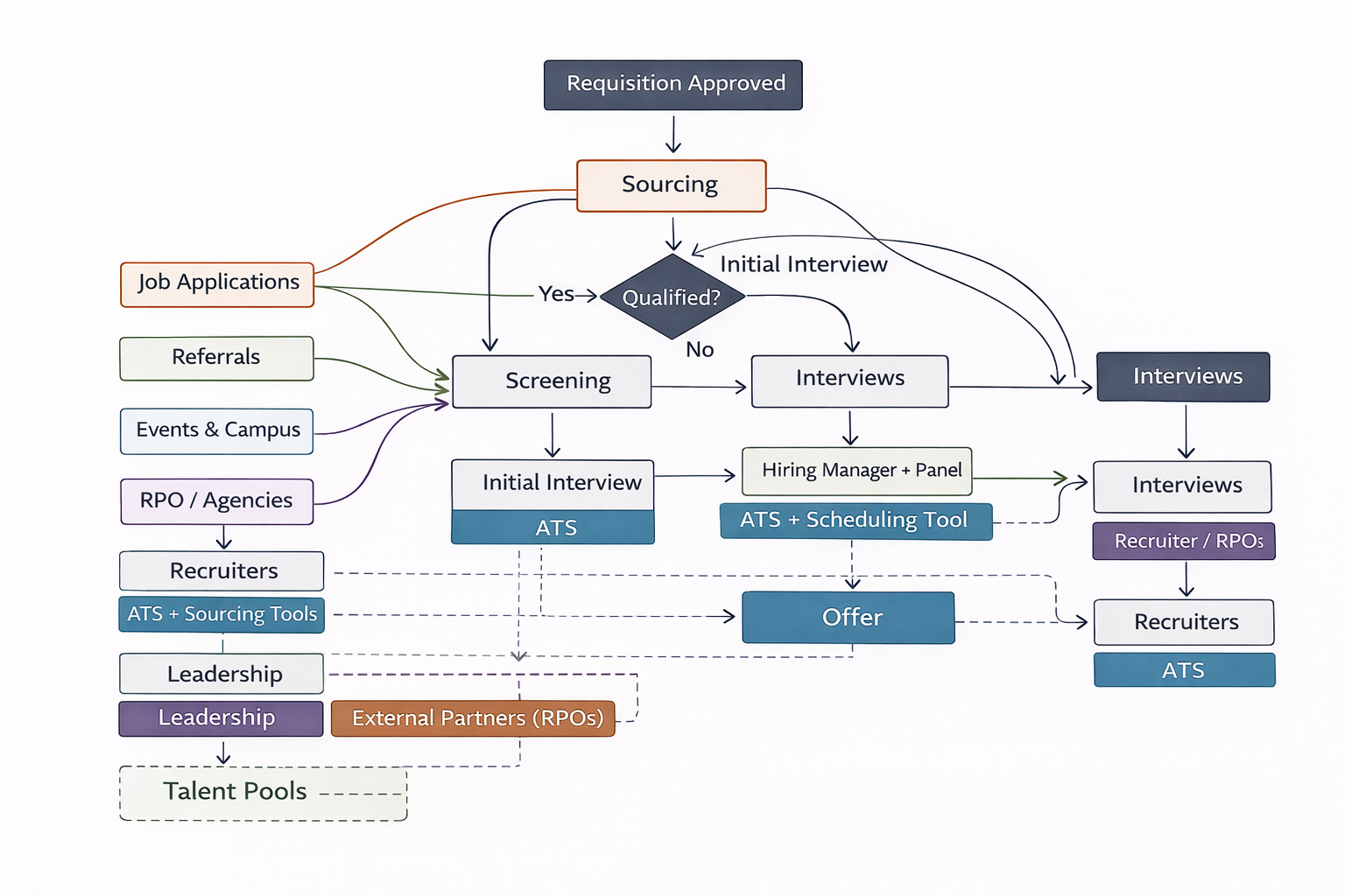 A flowchart should align with the tools your team actually uses. This includes your ATS, CRM, sourcing tools, and communication platforms.