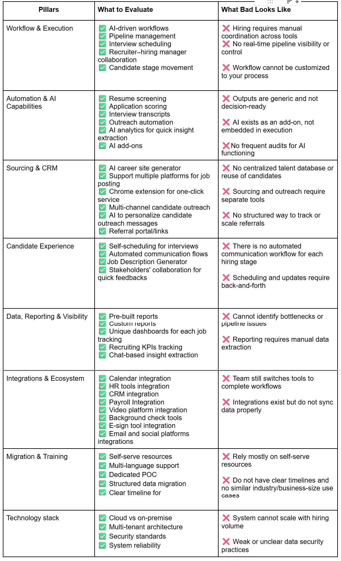Teams compare ATS tools using feature checklists instead of how hiring actually runs. This leads to buying tools that “have everything” but don’t work together in real workflows.