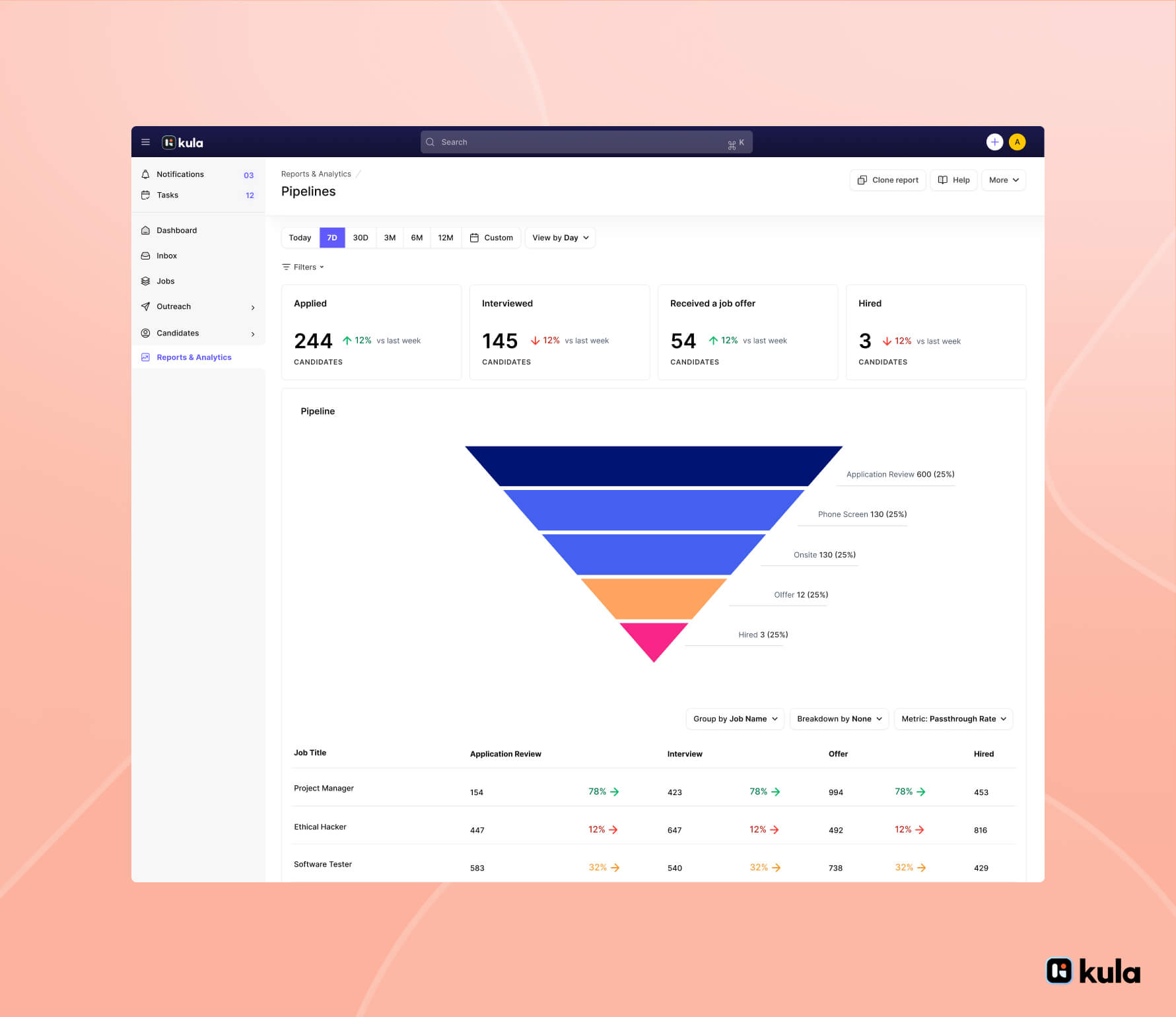 Platforms like Kula help bring these insights together by giving recruiting teams clear visibility into sourcing, outreach, and pipeline performance in one place.