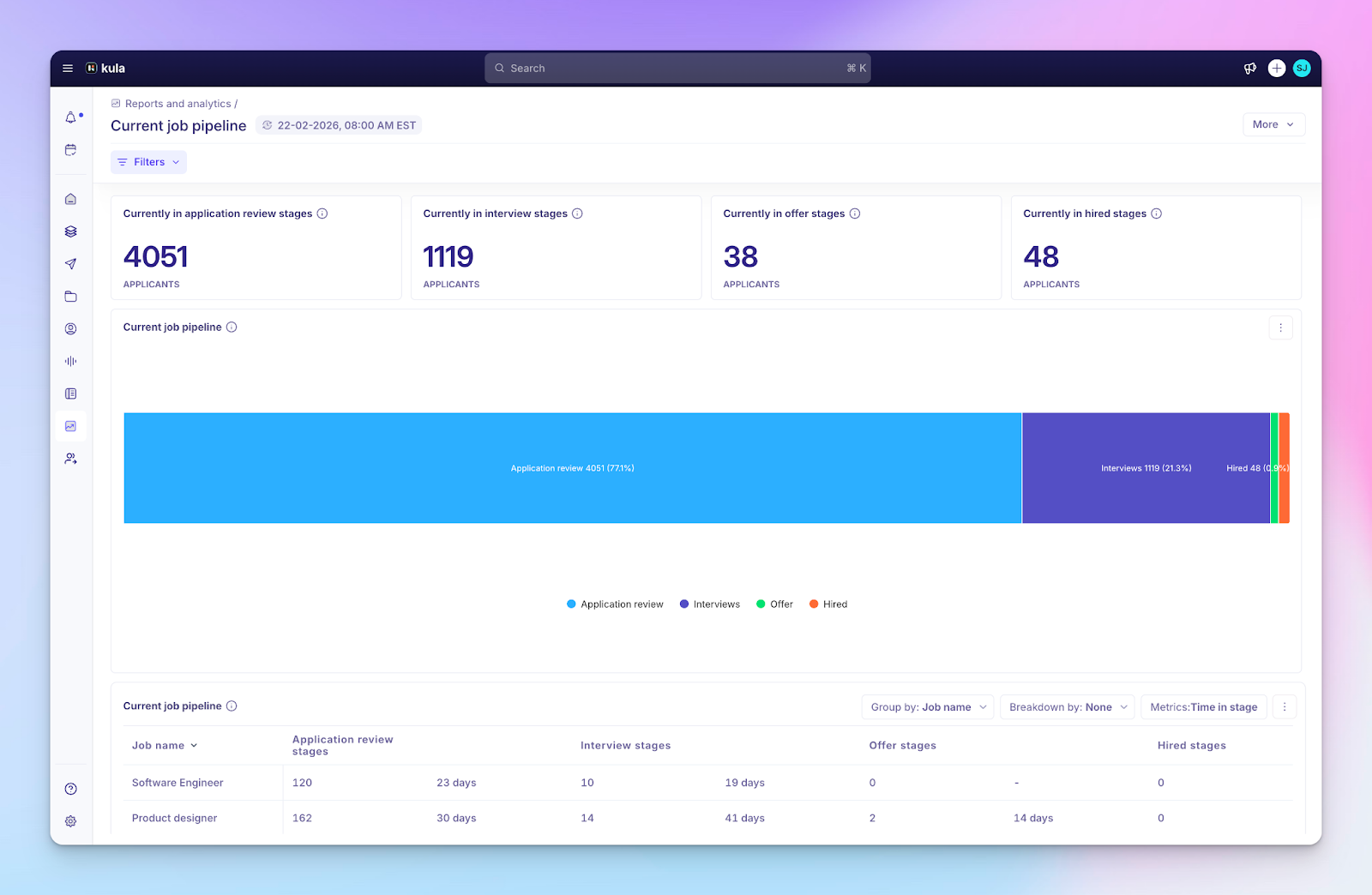 Kula’s Current Job Pipeline report provides real-time visibility into active hiring pipelines.