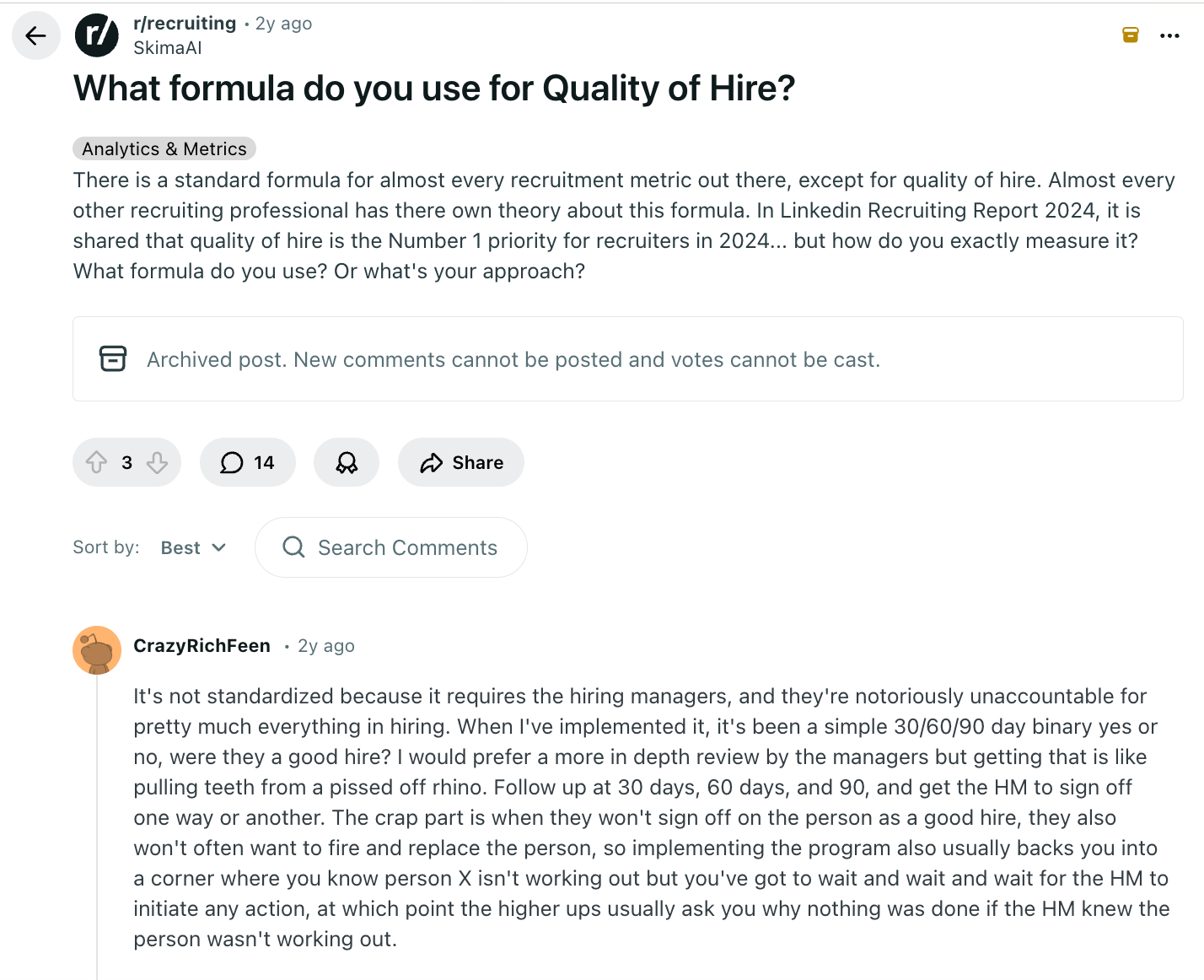 These metrics provide clearer insight into recruiting performance because they show whether sourcing, outreach, and interview processes are leading to successful hires.