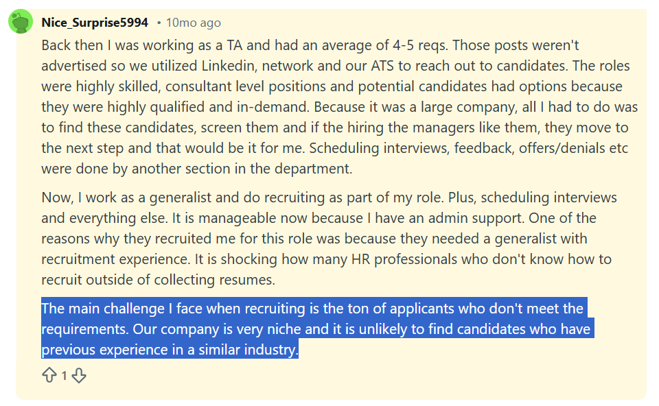 A large portion of these applications is either unqualified or loosely aligned, which makes the screening process more exhausting for them.